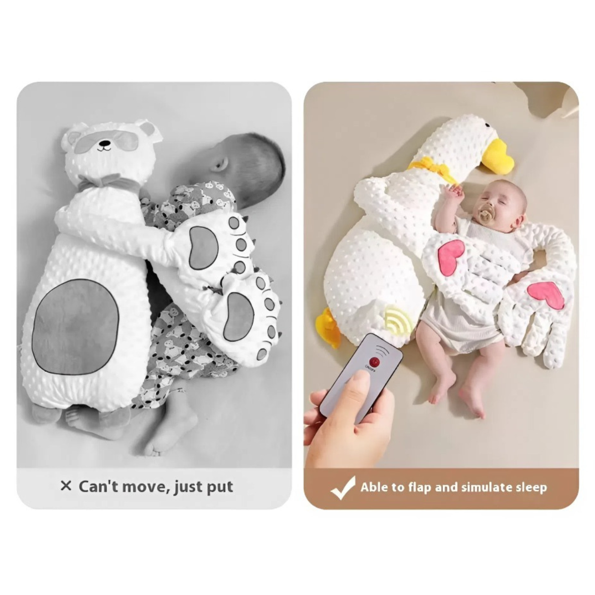 Comes with a remote control allowing you to customize the patting speed and intensity to suit your baby’s comfort.